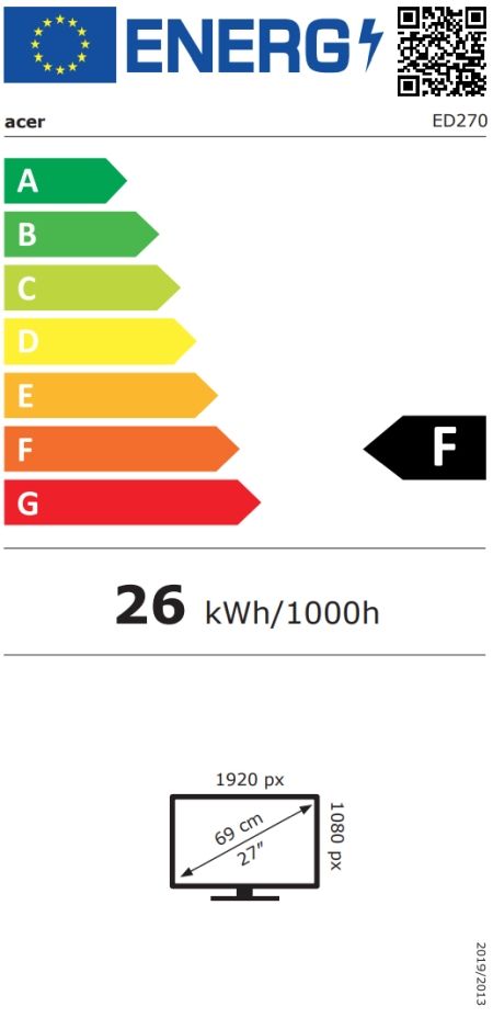 Монитор Acer Nitro ED270Zbmiipx, 27'' FHD (1920x1080) VA, Curved 1500R, ZeroFrame, 280Hz, 1ms (VRB), HDR10, 250nits, FreeSync Premium, 2xHDMI,Speakers, DP, Audio Out, VisionCare, Energy Class E, Black, 2Y