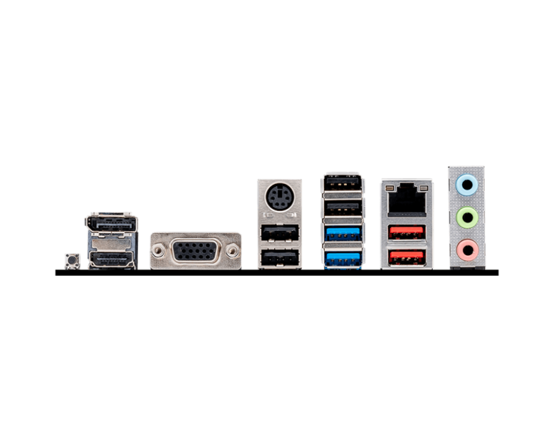 I/O:DisplayPort VGA Keyboard / Mouse USB 2.0 2.5G LAN Audio connectors Flash BIOS Button HDMI™ USB 2.0 USB 3.2 Gen 1 5Gbps (Type-A) USB 3.2 Gen 2 10Gbps (Type-A)