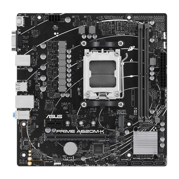 Storage:Total supports 1 x M.2 slot and 4 x SATA 6Gb/s ports*;AMD Ryzen™ 9000 & 8000 & 7000 Series Desktop Processors;M.2 slot (Key M), type 2242/ 2260/ 2280 (supports PCIe 4.0 x4 mode);AMD A620 Chipset;4 x SATA 6Gb/s ports;* AMD RAIDXpert2 Technology supports...