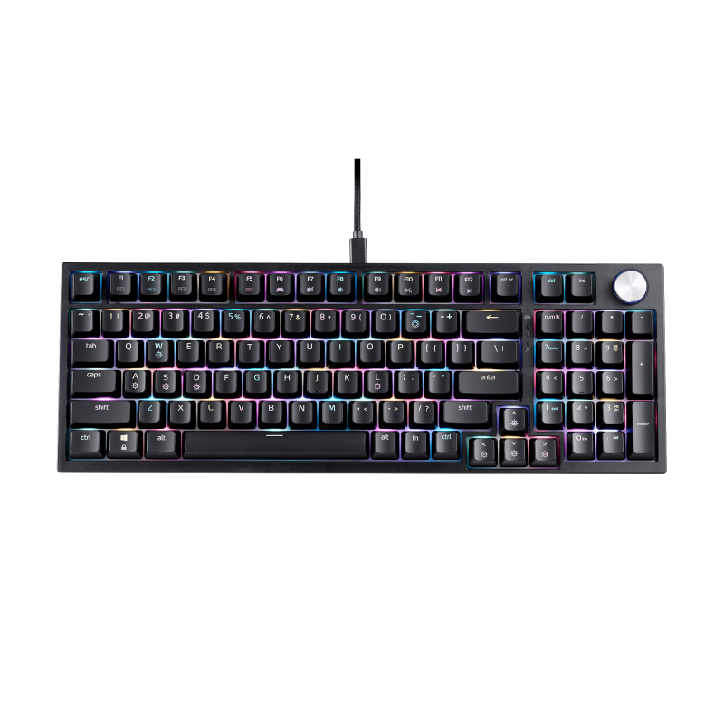 Media keys:Anti-ghosting keys: 100%;Key Switch: XPG Red Mechanical Switch, Metal Volume Knob;Lighting Effect: Per-Key RGB, 10 Preset Lighting Effects;Number of keys: 97 Keys (ANSI) / 98 Keys (ISO);Keystroke Lifecycle: Over 50 Million Keystrokes