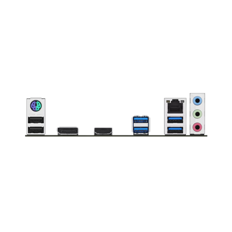 I/O:4 x USB 3.2 Gen 1 (5G) ports (4 x Type-A);2 x USB 2.0 ports (2 x Type-A);1 x DisplayPort;1 x HDMI™ port;1 x Realtek 1Gb Ethernet port;3 x Audio jacks;1 x PS/2 Keyboard/Mouse combo port
