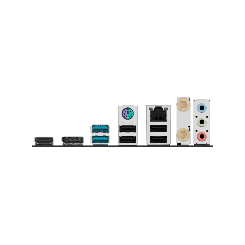 I/O:2 x USB 10Gbps ports (2 x Type-A);4 x USB 2.0 ports (4 x Type-A);1 x DisplayPort;1 x HDMI™ port;1 x Wi-Fi module;1 x Intel® 1Gb Ethernet port;3 x Audio jacks;1 x PS/2 keyboard/mouse combo port