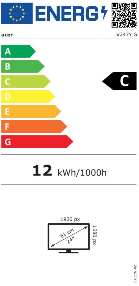 Монитор Acer Vero V247YGbi, 23.8'' FHD (1920x1080) IPS, ZeroFrame, 120Hz, 4ms (GTG), 100M:1, 250nits, HDMI, VGA, AdaptiveSync, VisionCare 2.0, Vesa, Tilt, TUV LBL Certificate, Energy Class C, Black, 3Y