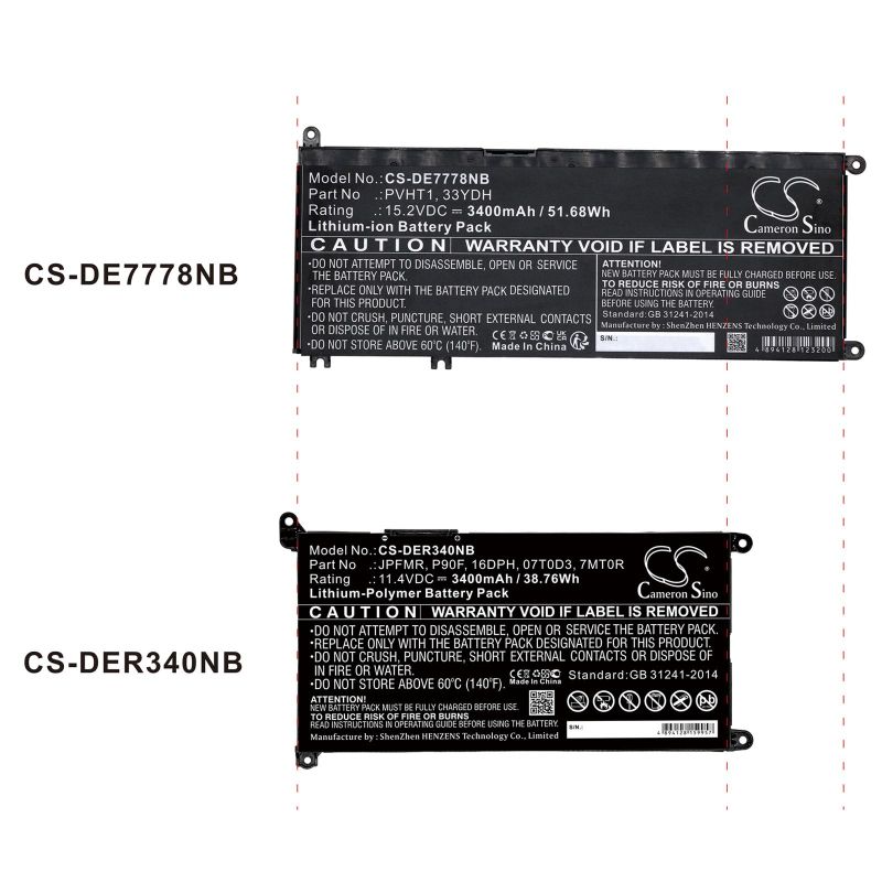 Батерия за лаптоп DELL G3 15, G5 15 5587, INS 15PD-1863BL, Latitude 15 3590, 33YDH, W7NKD, LiIon 15.2V 3400mAh CAMERON SINO