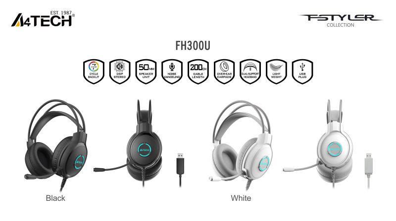 А4tech Fstyler FH300U Слушалки с микрофон USB, Noice Cancelling, бял
