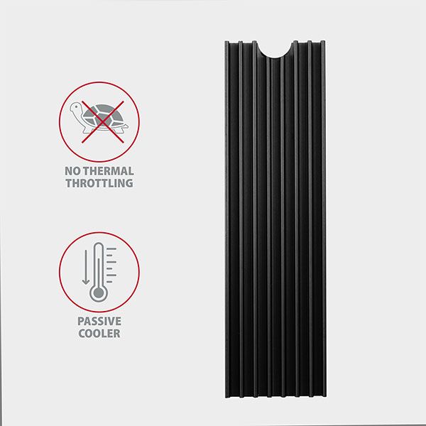6mm high ribbed aluminum heatsink assists in a better dissipation of heat generated during the M.2 SSD operation. It also reduces the drive temperature by up to 20°C. This prolongs the M.2 SSD life and prevents disk slow down, so-called "Thermal Throttling".