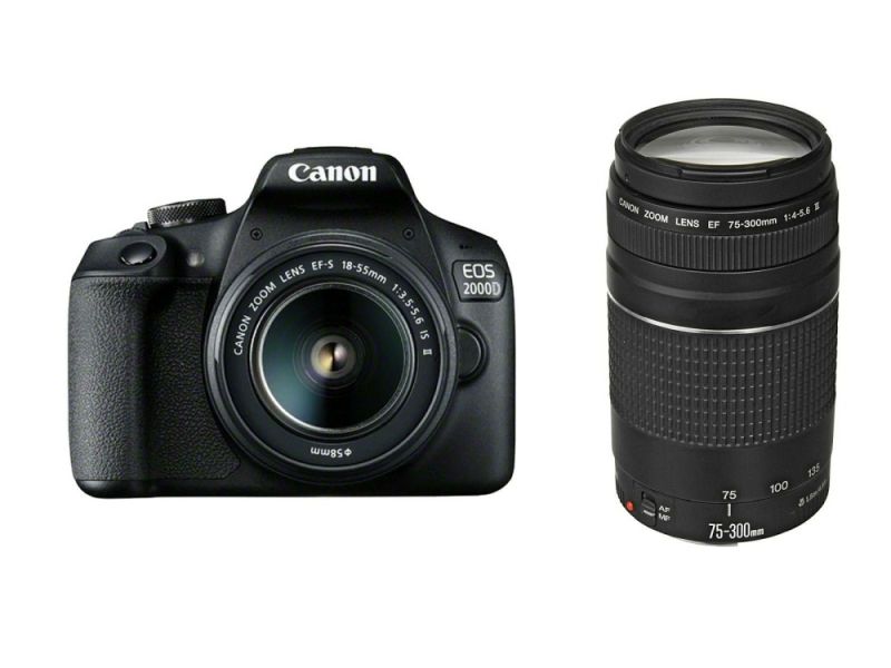 Огледално-рефлексен фотоапарат Canon EOS 2000D, black + EF-s 18-55mm f/3.5-5.6 IS II + EF 75-300 mm f/4.0-5.6 III